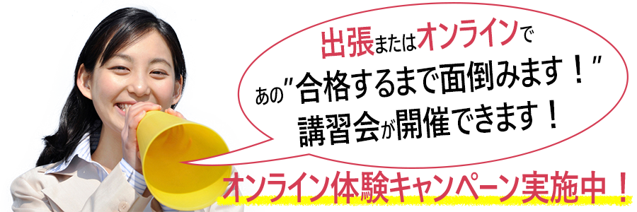 出張またはオンラインで、あの「合格するまで面倒みます!」講習会が開催できます!