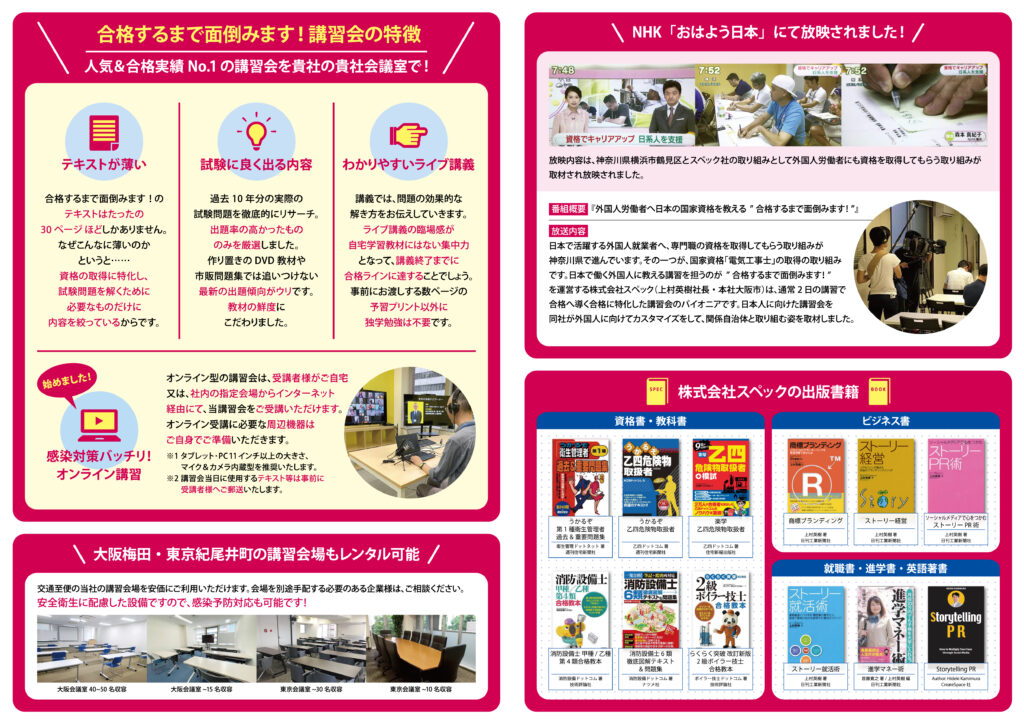 合格するまで面倒みます! 法人様向け出張・オンライン講習会.チラシ
