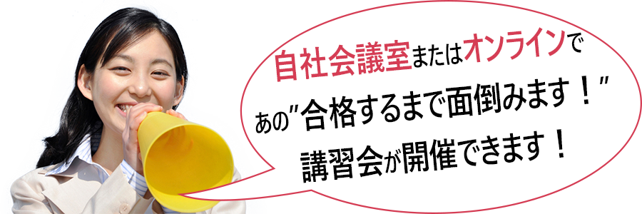 自社会議室またはオンラインで、あの「合格するまで面倒見ます!」講習会が開催できます!