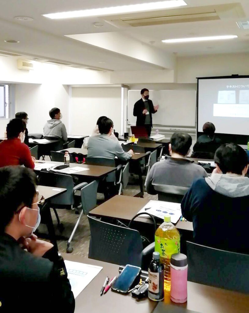 定員を通常より減員して、1テーブルに1席と受講者様との間隔をあけた配席で開催しています。